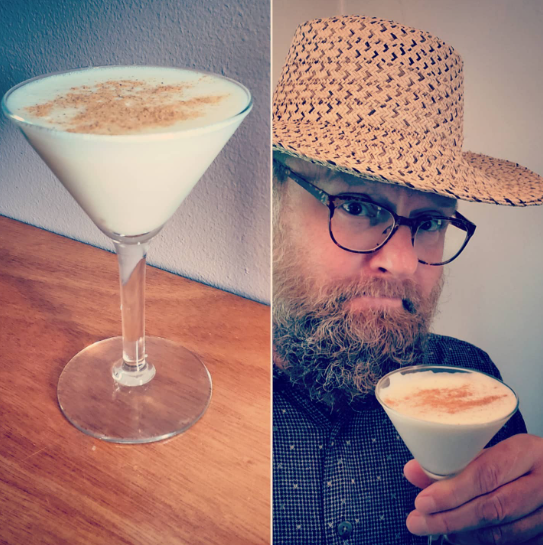 Breakin' out the goofy hats on this next-to-next-to-last day of the "21 Drink Salute." The Panama cocktail is brandy, creme de cacao, and cream, with a dusting of grated nutmeg. Do you like my Panama hat? It was actually a gift from a friend who had travelled in Panama. It's not quite grande enough for my cabeza gigante... but a celebratory hat is, after all, a celebratory hat. Go ahead and don your favorite one -- right now, I'll wait -- and drink up! Cheers.