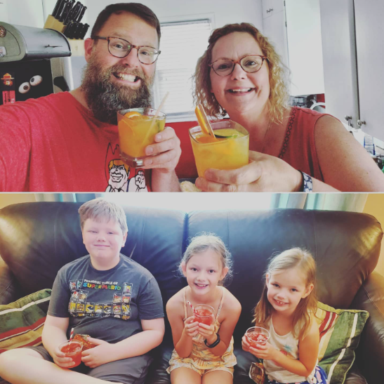 Shirley Temples for the sweet kids and Morning Mules for the cantankerous grownups! My sister and her kids dropped in on Day 5 of my "21 Drink Salute," so I got to mix up a mocktail for the tots (grenadine and ginger ale) and a cocktail for Mom and the favorite uncle (vodka, ginger beer, lime and orange juice). Cheers!