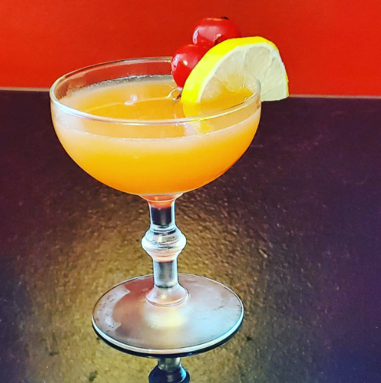 Gin and Sin: gin, orange juice, lemon juice, grenadine. And speaking of sin... a nun walks by a tavern and scowls at one of her former students she sees bellied up to the bar. He walks out and greets her, then offers to buy her a drink. "Certainly not!" she replies. "Alcohol is the Devil's drink!" Finally, after some back and forth about the relative evils of drink, Sister agrees to try just one drink, on the condition that it be served to her discreetly in a teacup -- lest she give scandal to anyone walking by. The man returns to the bar and orders two whiskeys, neat, requesting that one be poured into a teacup. The bartender rolls his eyes and says, "Oh, is that damned nun here again?" With apologies to any nuns who may see this... Cheers!