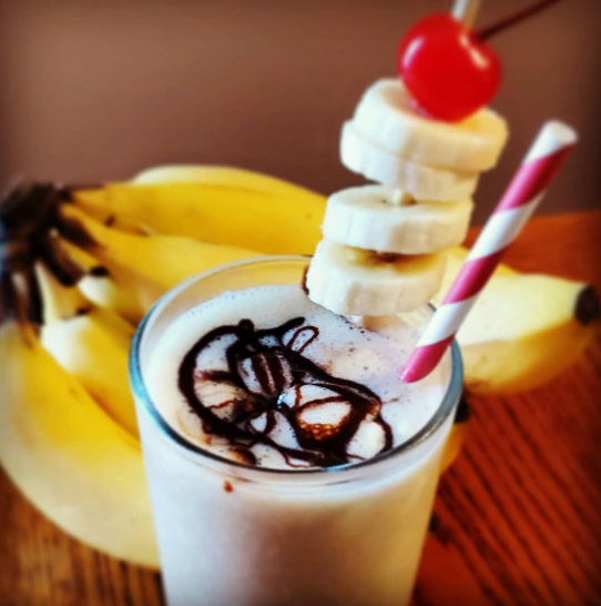 Dirty Banana: dark rum, coconut rum, coffee liqueur, vanilla ice cream, and one fresh banana. So, a banana and his buddies in the produce aisle are chatting after the store has closed. Broccoli says, "You know, my mama always said I kinda looked like a tree." Walnut replies, "Weird, my mama always said I look just like a brain." Mushroom chimes in, "Oh wow, my mama always said I look like an umbrella." Finally Banana just says "Can we please change the subject?" Cheers!
