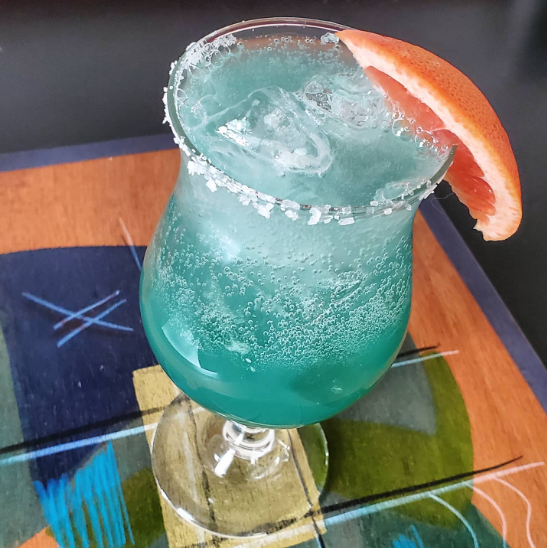 Dutch Paloma: tequila reposado, grapefruit juice, blue Curacao, club soda. Day 17 of the "21 Drink Salute" means we're in the homestretch, which means it's time to let loose and start getting a little creative in the ol' home bar. The Paloma is basically a margarita made with grapefruit juice and bubbles. I tossed in a little of the blue stuff (which is a citrus liqueur originating on a Dutch island in the Caribbean called Curacao -- don't ask me how it's pronounced)... and, voila! A new fancy blue drink by your favorite fancy Dutchman. Cheers!
